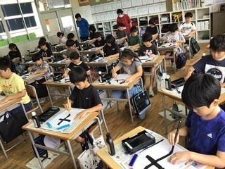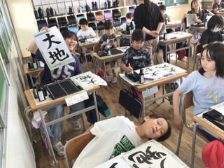 3年生と比べると、やっぱり上手さが違います。1年間のキャリアは、やっぱり確実に身に付いているようです。「大」にもはらいがありますが、字形を整えながら伸び伸びと書いていました。1枚目の清書で、納得の作品ができた子どもが、嬉しそうに見せてくれました。教室の中は、墨汁のいい香りが漂っていました。
