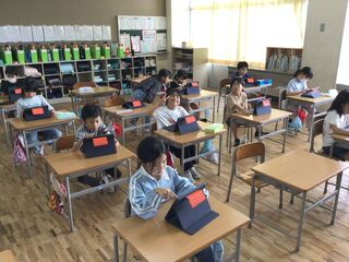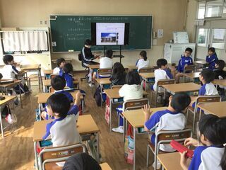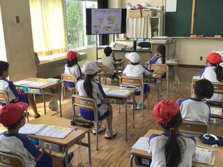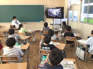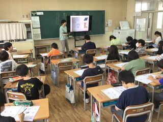理科の授業でした。今までの学習の発展として、理科の時間に学習した内容と関連のある動画を視聴していました。モンシロチョウの観察の発展として、カイコがまゆを作って成虫になる様子も見ました。風の力を利用して、奇妙な動きをするアート作品も見ました。子どもたちは、歓声を上げながら前のめりになって見ていました。