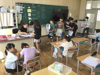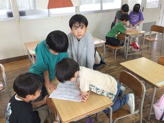 グループに分かれて、わくフェス学習発表会の台本を読み合わせていました。トンボチーム、バッタチームなどがあるようです。1学期から育てている、いろいろな虫のことを、会場に来てくださった皆さんに教えてあげたり、クイズにしたりして楽しく発表するようです。一人一人が虫博士の1年生。楽しみですね。