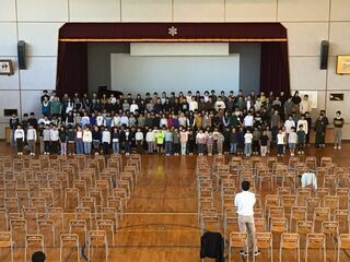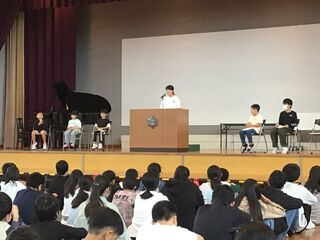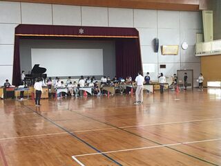 1組と2組合同で、わくフェスの合奏練習をしていました。少し前まで、パートごとに練習していましたが、今週はもう体育館での練習が始まりました。「難しい~。」と言っていたのに、短期間で暗譜して演奏できるまでになっています。