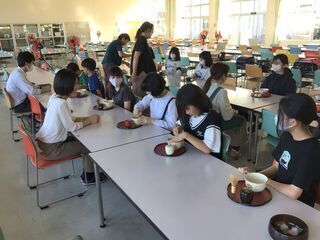 毎回、本格的なお茶をたてているお茶クラブです。考えてみれば、小学生でお茶をたてる経験なんて、なかなかないですよね。お茶を飲む前にいただく、お菓子も用意されていました。今日は、何人かの職員もお茶会に招待され、子どもたちの立てたお茶をいただきました。クリーミーで、おいしいお茶でした。私もやってみましたが、意外と難しく右腕が痛くなりました。