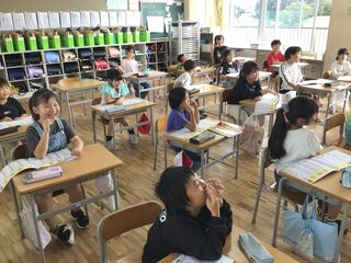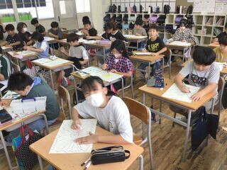 国語の、新出漢字の学習をしていました。単漢字で読んだり、熟語にして読んだり、ランダムに読んだり、いろいろな方法で繰り返し学ぶことで、すらすら読めるようになっていったようです。「何」を読むときだけ、なぜか爆笑が起こる2組の子どもたち。きっと、ツボにはまる何かがあったのでしょう。