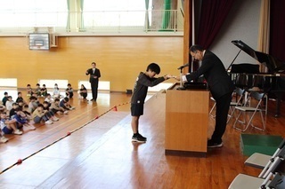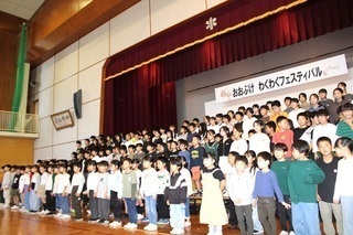 学習発表会のエンディングは、全校児童による校歌斉唱です。1回だけの全校練習で完成させたとは思えないほど声が出ていて、迫力満点。なんだか、心が熱くなりました。口ずさみながら聴いていらっしゃる方もおられ、子どもたちだけでなく大人にとっても愛着のある校歌なのだと、改めて感じました。