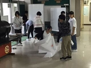 はさみで型紙を切りながら、紙飛行機を作りました。紙飛行機づくりは2回目のようで、手際よく作ることができたようです。よく飛ぶ紙飛行機は、図工室の広さでは物足りないようでした。よく飛ぶように、少し角度を変えてみたりと、ちょっとした工夫を凝らすところがおもしろさですね。もの作りの楽しさを、十分に味わっていました。
