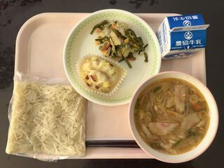 ごま和えには、切り干し大根が入っていました。よく噛むメニューで、噛むたびにごまの風味と甘み、酢の酸味を味わうことができました。調理員さん、今日の給食もとってもおいしかったです。