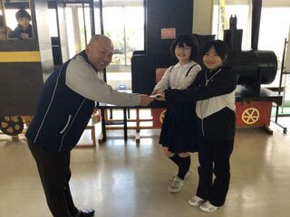 11月10日(月)から14日(金)まで、児童会総務委員会が全校の子どもたちに呼びかけ、赤い羽根共同募金の取組を行いました。期間中に集まった募金は、4,309円です。全校の子どもたちの、善意がつまった募金です。今日は、社会福祉協議会の方が集まった募金を受け取りに来られました。総務委員長と副委員長が、全校を代表して募金をお渡しました。募金は、誰にでもできるボランティアです。協力してくれた皆さん、ありがとうございました。