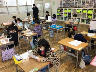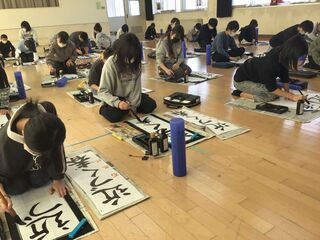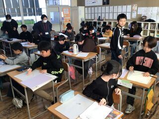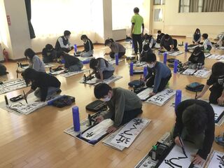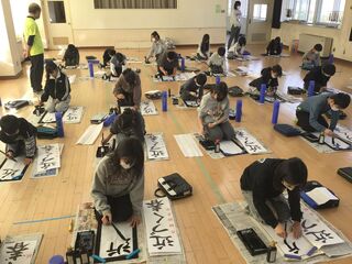 一画ずつ、お手本を見てはポイントを確かめ、筆を進めました。この調子で練習すれば、どんどん上達しそうです。2時間集中して書いたのに、「もう1枚書きたい。」と言っている子どもも多く、驚きました。 書初めは、冬休みの課題にもなります。3学期始業日の翌日が、校内書初め会です。紙が足りなくなるくらい、練習に励みそうな5年生でした。