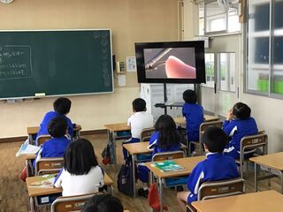 兼城小学校の2年生は、ノグチゲラやハブクラゲ、マンタなど、上越では見ることのできない動物のことを紹介してくれました。初めて聞くような知らない動物が出てきて、2年生は熱心に聞いていました。兼城小の2年生は、大瀁小の2年生に教えてあげようと、棲んでいる場所や体の特徴など、ずいぶん詳しく調べ発表してくれました。クイズもたくさんあり、初めて知ることがいっぱいの交流でした。