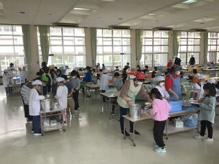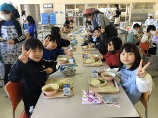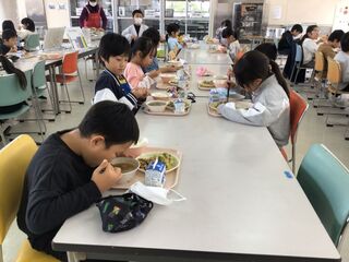 給食が始まると、子どもたちは黙食で給食のおいしさを味わっています。感染症の感染拡大防止のため、うがいや手洗い、換気にも気を付けています。ジャガイモのほくほくとした食感や青のりの風味、玉ねぎの甘みなど、食材のおいしさを味わうことができました。20~25分で食べ終わる子どもも、以前より多くなったと感じます。家庭でも、会話を楽しみながら20~25分の時間を目安に、食べることができるといいですね。