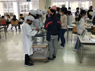 切り干し大根というと、真っ先に炒り煮をイメージします、給食では、焼きそば風にしてソース味で出てくることもあります。今日は、のりマヨでした。想像以上に美味しく、切り干し大根の新しい食べ方を発見したような気がします。午前中に、おでんを作っていた2年生。給食を食べずに、お昼ごはんはおでんかと思いましたが、5時間目にパーティーを開くそうです。「おでんは、給食を食べた後のデザートかな。」と話している子どももいました。さて、どうなることやら…。