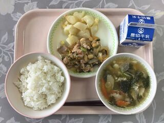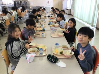 今日のスープには、ほくほくで甘みたっぷりのさつまいもが入っていました。数えてみると、11月の給食17回のうち、さつまいもやじゃがいもといったいも類が、13回提供されています。それだけ、「熱や力になる食材」として、いも類が重宝されているということです。もちろん、地場産を使用している強みもあります。家庭では、いも類はどれくらい登場しているでしょうか。