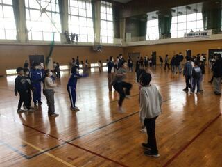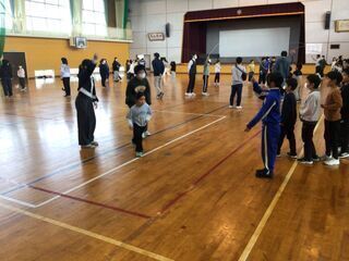 2月6日(金)の記録会に向けて、今日から練習が始まりました。どの班も真剣な表情ですが、さわやかな笑顔も見られます。お互いを名前で呼び合ったり、「大丈夫、大丈夫!」「ナイス!」などの言葉がけも聞かれます。高学年が、低学年に優しく温かく接しています。1年生も、体育の時間に練習したようで、上手に大縄に入ることができる子どもがたくさんいました。