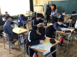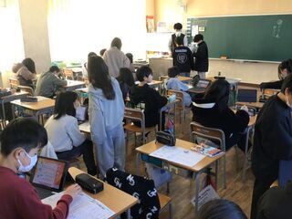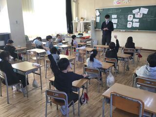 <6年1組>国語のワークテストが終わり、配りものをしていました。学年だよりには、冬休みの課題や生活の注意事項が書かれていました。冬休みを実感する学年だよりでした。特に、メディアとのかかわり方は、家族でルールを決めて守ってほしいです。頸城中学校の、入学説明会のプリントもありました。授業日で数えると、小学校生活も残すところあと50日余りです。いよいよ、中学校の背中が見えてきました。