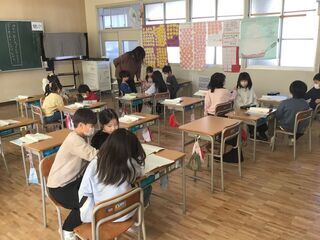 <4年生>午後から、地域のデイサービスセンター「無憂の里」へ校外学習に出かける予定でした。しかし、感染症が広がる傾向のため、やむなく延期しました。利用者の方との交流を楽しみにしながら、準備を進めてきた4年生ですが仕方ありません。