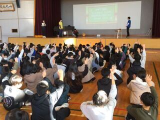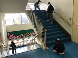 体育館から、大きな掛け声が聞こえてきました。回数を数えるかけ声です。体育館に行ってみると、大縄跳びの練習をしていました。おおぞら班での大縄記録会に向けて、特訓?しているようです。前回よりも、前の人との間をあけずに、大繩に入ることができるようになっていて驚きました。昼休みのおおぞら班での練習が楽しみです。