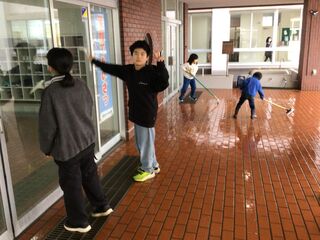 今日は、2学期末の大清掃でした。いつもより5分、清掃開始時刻を早くして、20分間の清掃です。ガラス拭きや床の水拭き、窓の枠、サッシやドアのレール、棚やロッカーの上など、普段の清掃では行き届かない所を中心に清掃します。くもの巣とりや清掃用具入れの掃除もします。期末大清掃は、学期末の風物詩でもあります。