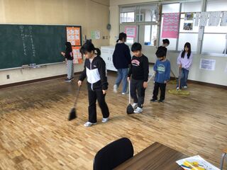大瀁小学校は、全校縦割り班の「おおぞらグループ」で清掃を行います。高学年は、自分の仕事をきちんとやって、下学年に手本を見せるだけでなく、下学年に指示を出し仕事のやり方を教えます。下学年の子どもたちは、わがままを言わずに高学年の仕事の仕方を見ながら、清掃のやり方を覚えます。どの清掃場所も、時間いっぱい仕事をして、学校を隅々まできれいにしました。