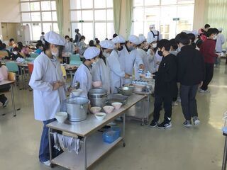 給食の時間、給食委員会が郷土料理を紹介しました。のっぺい汁は、郷土料理として有名ですが、おぼろ汁もそうなのですね。体が温まるおぼろ汁は、ほのぼのとした優しい味わいでした。もしかしたら、お正月は郷土料理を食べる機会も多くなるかもしれませんね。ふるさとの味、家庭の味を、ぜひ子どもに伝えてください。