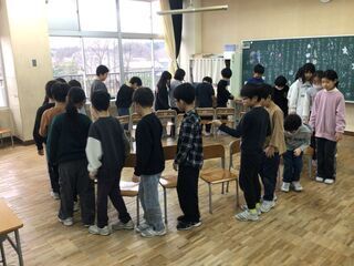小学校生活の中では、お楽しみ会も学期末の風物詩です。3年生は、教室で「フルーツバスケット」を楽しんでいました。黒板には、お楽しみ会のプログラムが書いてありました。よく見てみると、鬼ごっこやドッジボール、的あてゲームにくじ引き大会と、13種類の遊びが書いてありました。もしかして、今日は「お楽しみ会デー」でしょうか。子どもたちが考えて計画し、準備も進行もみんな子どもたちでやっていました。「学級自治」の力が育っている3年生です。