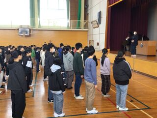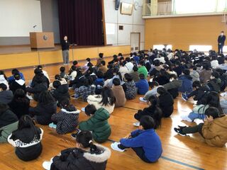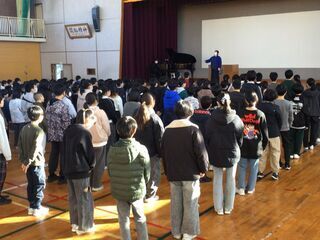 生活指導主任からは、安全で楽しい冬休みの生活についての話がありました。「降雪期の安全」「規則正しい生活」「メディアとの付き合い方」についてです。家庭でも、冬休みの生活について、ぜひ子どもと話し合ってください。事故にあわないよう、様々な感染症に負けないように気を付けて、元気に楽しい冬休みを過ごしてほしいと願っています。