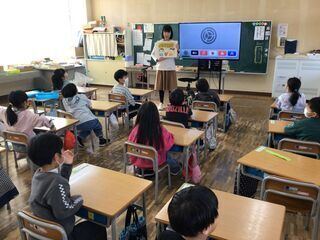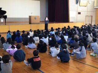 <1年生>栄養教諭が、食育の授業を行っていました。来週は給食週間です。栄養教諭が、朝活動の時間も利用して、調理員さんの仕事を紹介しています。今日は、「いただきます」と「ごちそうさま」の意味を、学んでいました。いつもの自分を振り返りながら、学んでいるようでした。きっと、明日からの給食のあいさつが変わるでしょう。おうちでの食事のあいさつも変わるといいですね。