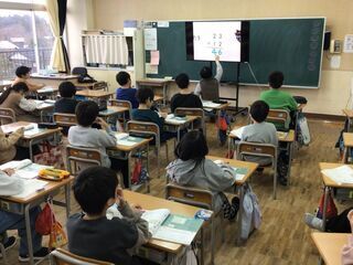 算数の授業で、「2けた×2けた」のかけ算のひっ算の仕方を学んでいました。基礎・基本のアルゴリズム(手順)をマスターすることが大切です。担任が、計算の仕方を一つ一つ丁寧に確認していました。自分の力でどんどん解決する力も必要ですが、まずは「ベースとなる部分をしっかりていねいに」ということです。3けたのかけ算のひっ算につながる、大切な学習でした。