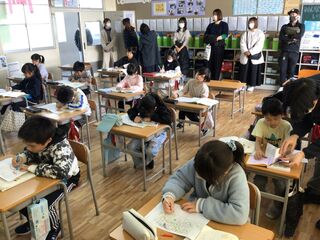 今日は、2学期の終業日。1時間目に全校集会を行い、2時間目からは各学級での活動でした。<1年生>