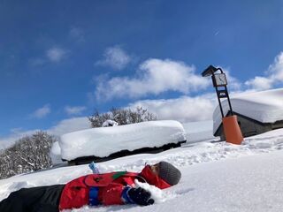雪が降る中でも、とても元気で張り切っているようです。この元気で、スキーも攻略できるでしょうか。上越の冬を、存分に楽しんできてくださいね。