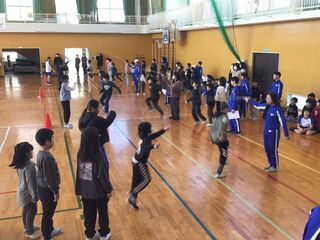3時間目は、体育の学習でした。短縄跳びに挑戦です。できる技で回数に挑戦する子ども、新しい技に挑戦する子ども、一人一人が自分のめあてで短縄に興じていました。運動不足になりがちな冬です。短縄に挑戦することを通して、体力づくりをしたり運動能力を高めたりしてほしいです。担任も、子どもに混ざって短縄を楽しんでいました。