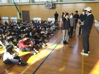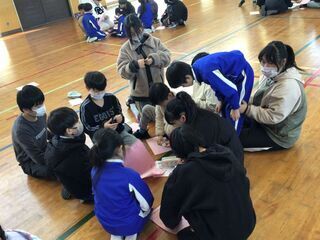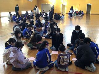 第2部は、6年生と中学1年生との交流会でした。顔なじみの先輩(大瀁小の卒業生)もいます。K3集会でも交流しました。中学校の雰囲気もずいぶん肌で感じてきた6年生です。しかし、中学校の入学式まで、あと2か月となった今、卒業・進学がより現実的になってきたこともあり、緊張感の中で交流会に参加しました。中学1年生は、ずいぶん時間をかけて、交流会の準備をしてくれたそうです。