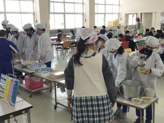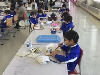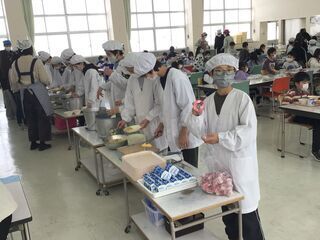 目の前におうちの方がいるので、子どもたちも少し恥ずかしそうです。いつもは、最高学年として全校をリードしてくれる頼もしい6年生ですが、今日は普段とは違った表情を見ることができました。今日は節分献立だったので、おうちの方に来ていただくのに、ぴったりの給食でした。おうちの方が小学生だった頃と、給食の味や見た目は変わったでしょうか。ちょっと、興味があります。