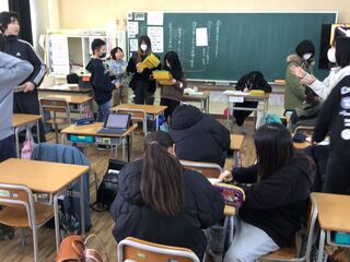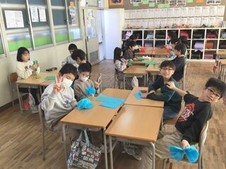 6年生を送る会(冬わく)の準備でした。3年生は、6年生が入退場するときのアーチづくりを担当します。教室では、お花紙でアーチに飾る花を作っていました。感謝の気持ちが伝わるよう、丁寧にふんわりとするように作っていました。教材室では、アーチに花を飾り付けていました。6送会に向けて、思い出に残る「冬わく」にしようと、各学年が準備を進めています。