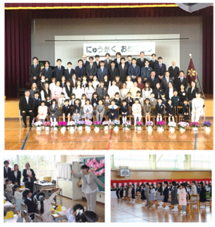 4月9日(木)、ソメイヨシノが満開の中、妙高三山、米山、尾神岳、関田山脈に見守られ、入学式を盛大に行うことができました。今年度の新入生は27名です。ご多忙の中、11名のご来賓の皆様が式に花を添え、喜び一杯の一年生をお迎えできたことに感謝申し上げます。六年生全員が一年生のお手本となるよう「おはようございます」「行ってきます」「ありがとうございます」と唱えると、それに呼応し一年生の元気な返事とあいさつが返ってきました。返った瞬間、しばらく間を置き、六年生と一年生の温かくて立派な姿を称える大きな拍手が会場全体から湧き上がりました。