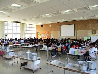 大瀁小学校では、全校が一堂に会し、ランチルームで給食をいただきます。
