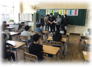 また、朝学習の時間には、絵本の読み聞かせやお話(雑談)もしています。先日は、大瀁小学校にまつわるクイズを出しました。ヒントを出しながら一年生が自信をもって答えられるように工夫していました。