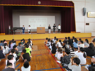 第一学期始業式では、学級担任の発表と教職員スタッフの発表がありました。どの教職員の発表に対しても、温かな拍手で迎え入れてくれました。大瀁の子は、心優しい子供たちです。