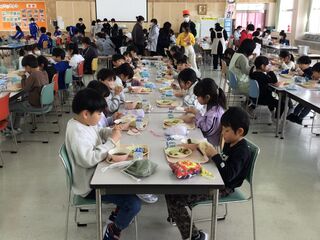 1年生は、静かに手を合わせて、「いただきます。」のあいさつをしていました。「いただきます」には、肉や魚、野菜などの「大切な命をいただく」という意味があります。また、「ごちそうさま」には、食事を作るために走り回った方たち(農家さん、食材を運ぶ方、食事を作る方など)に感謝する意味があります。給食だけでなく、家庭や外食した時なども、感謝の気持ちであいさつしたいものです。
