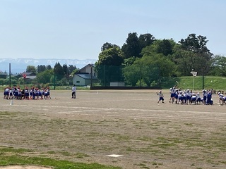 <4年生>新しい種目の、ポートボールの練習が始まったようです。ガードマンとゴールマンを決めて、シュート練習をしていました。これから、パスやドリブルの練習もしながら、ゲームを楽しむのでしょう。チームワークも、どんどん高まっていくといいです。今の遊びの中には、「投げる」経験が少ないと感じます。たくさん練習して、投げる力も付けてほしいです。