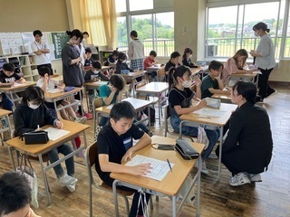 一人で練習したり、自由に教室を歩きながら友達と練習したり、中には担任に聞かせてあげている子どももいました。恥ずかしがっていた子どももいましたが、ひとりひとりの「ああ。」「とてもいいお手紙だ。」が完成したようです。振り返りの時間は、iPadを使って、友達の感じたことと比べながら、今日の学習をまとめました。新しいiPadの活用の仕方は、職員でも共有したいと考えています。