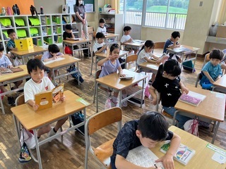 読書は、想像力を豊かにしたり、いろいろな言葉を覚えたり、集中力がアップしたりと、「百利あって一害なし」と言われます。読み語り(聞かせ)だと、さらに効果が高いとも言われます。子どもたちが、想像力を総動員して聞いていることを、表情や身を乗り出して聞いている姿から感じました。「大瀁読み語りの会」の皆様、ご多用の中、子どもたちのためにありがとうございました!