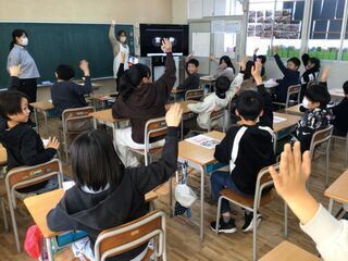 生き物が大好きな3年生。そういえば、1学期は熱心にモンシロチョウの幼虫やさなぎを観察し、お世話もしていました。寒くなったこの時期、生き物たちはどうしているのでしょう。動画で、木の枝そっくりに潜んでいるクワエダシャクや、コムラサキの幼虫、カマキリの卵などを見て、歓声を上げていました。身の回りの自然を見る目が、変わってくるかもしれません。