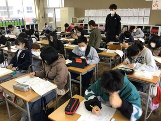 <6年2組>1時間目から続けて、書初め練習をしていました。教室での授業の様子とは違い、ピーンと張りつめた空気の中で、集中して書いていました。そういう時間も、子どもにとっては大切ですよね。「気持を入れ込む!」という瀧本先生の言葉が、心に残りました。小学校生活最後の書初めです。冬休みも、新年の清々しい気持ちや、今年にかける決意を、書初めに入れ込んでほしいです。