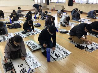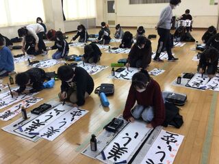 一画ずつ、お手本を見てはポイントを確かめ、筆を進めました。この調子で練習すれば、どんどん上達しそうです。2時間集中して書いたのに、「もう1枚書きたい。」と言っている子どもも多く、驚きました。 書初めは、冬休みの課題にもなります。3学期始業日の翌日が、校内書初め会です。紙が足りなくなるくらい、練習に励みそうな5年生でした。