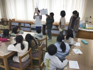 昼休みに、図書委員会が図書クイズ大会のイベントを開きました。今日は、1・2年生です。読書旬間中のイベントとして計画していましたが、インフルエンザの感染拡大防止のため延期になっていたのです。昼休みの図書室には、椅子に座り切れないほどの1・2年生が参加してくれました。