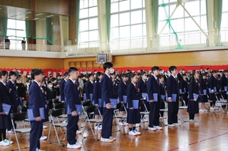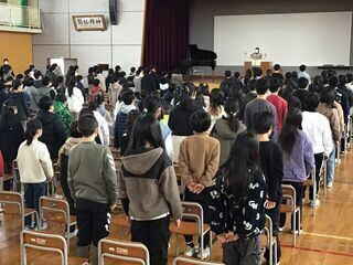 学校では、1年間に様々な行事を行います。その中でも、一番大きな行事、一番大切な行事、一番おめでたい行事が卒業式です。学校にとっては、今年度の教育活動の集大成でもあります。卒業式には来賓の皆様をお招きし、卒業生の成長した姿を見ていただきます。卒業生にも在校生にも、卒業式に参加する意味と意義をしっかりと受け止めて、卒業式を迎えてほしいと考えています。