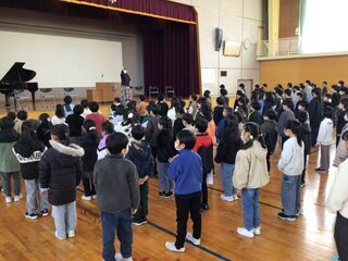 卒業式まであと10日となった今日、卒業式の全体練習を行いました。卒業式に参加する心構えや作法を指導し、「よろこびのうた」(呼びかけ)や式歌を、全校で練習しました。2月24日(火)に同窓会入会式を終え、「6年生」が「卒業生」と呼ばれるようになりました。卒業式が、間近に迫っていることを実感します。