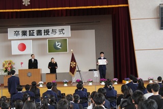 とてもパワフルでエネルギッシュな、今年度の卒業生でした。運動会やわくフェスなどの行事は全力で盛り上げ、児童会活動では次々に新しい企画をしました。1年生への読み聞かせや大縄記録会では、下級生を思いやる温かな心を育みました。卒業証書を受け取る卒業生の表情は、実に爽やかで凜としていました。充実した小学校生活を物語っているようでした。そして、中学校という新たなステージに進む決意が表れていました。