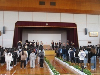 保護者・御家族の皆様、これまでの本校教育への御理解と御支援・御協力に、心から感謝申し上げます。そして、これからも御家族そろって御健勝であること、卒業生の益々の成長を祈念いたします。保護者・御家族、地域の皆様、多くの方の御支援のおかげで、今日を迎えることができました。ありがとうございました。